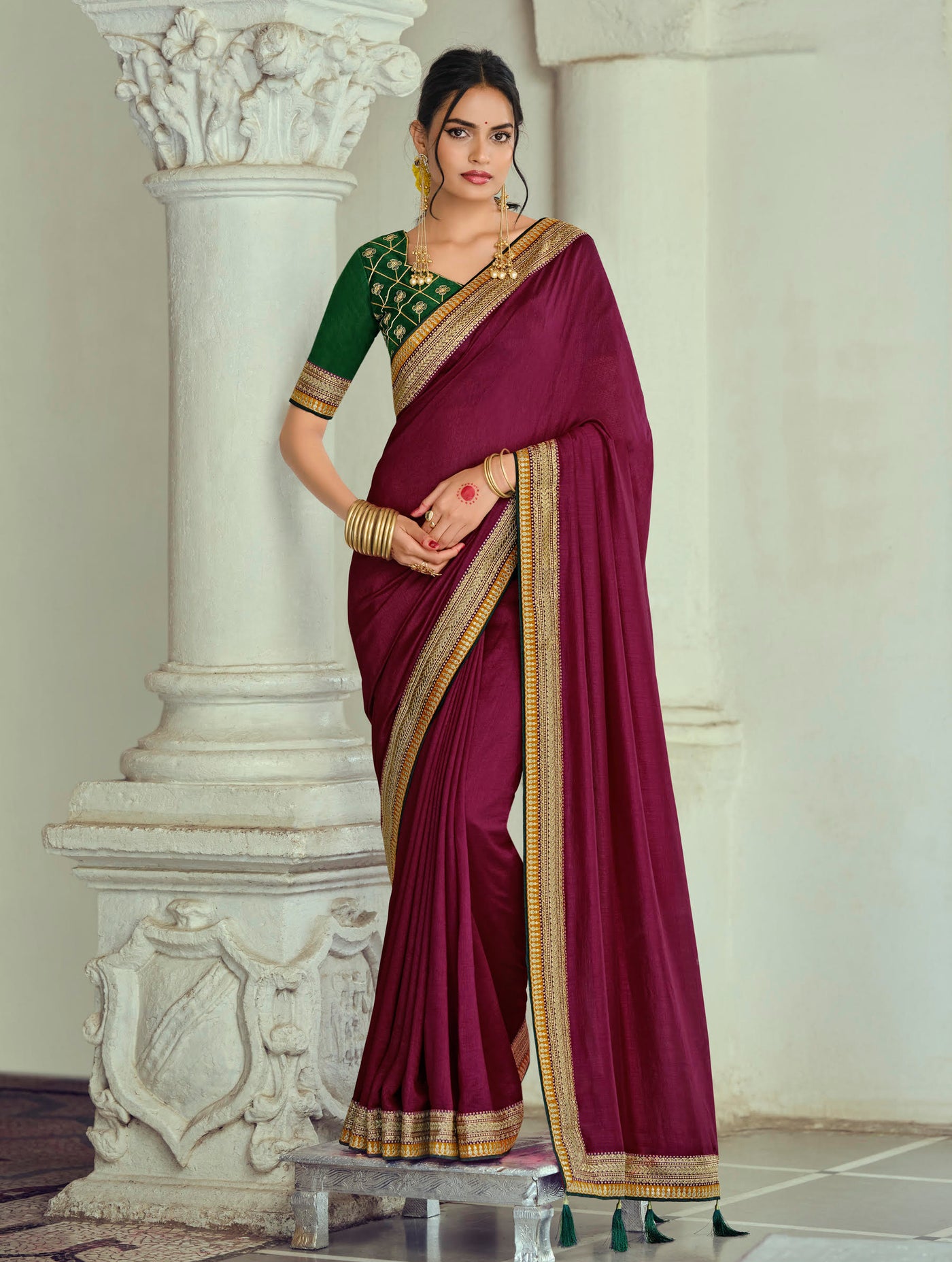 Wine Purple Silk Saree with Gold Zari Border