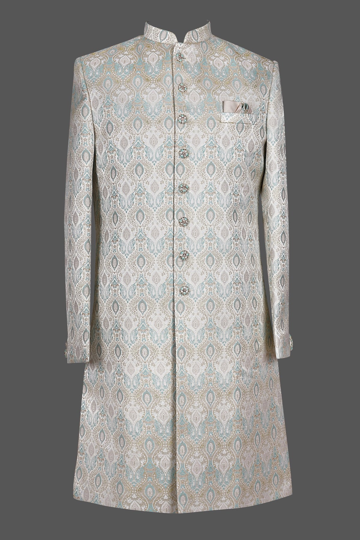Silver Blue Paisley Brocade Sherwani for Men | Premium Indian Wedding Groom Sherwani - 48